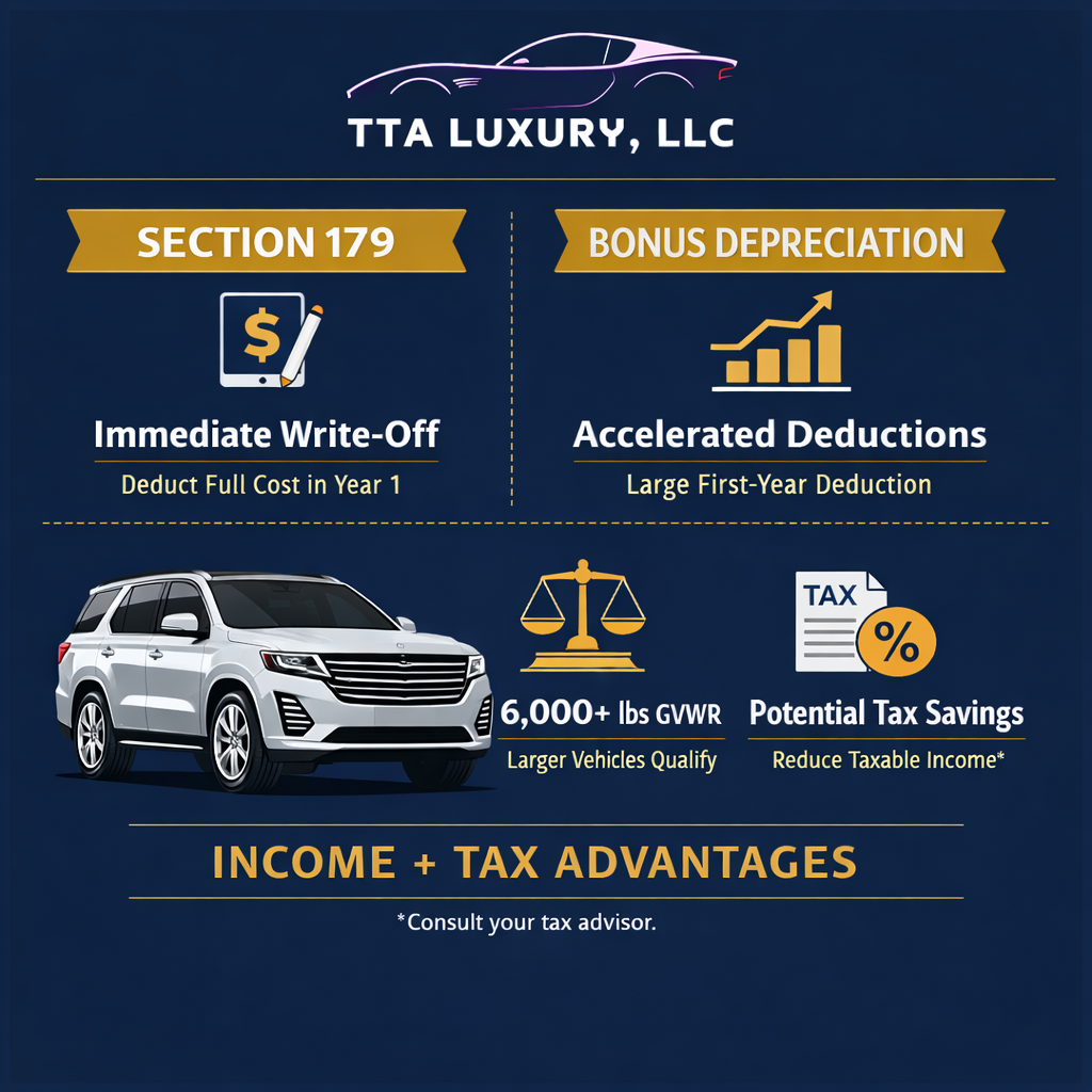 Section 179 and bonus depreciation can make vehicle ownership more strategic than most people realize. Combined with professional management and strong market demand, vehicles can function as more than transportation — they can become part of an investment strategy.